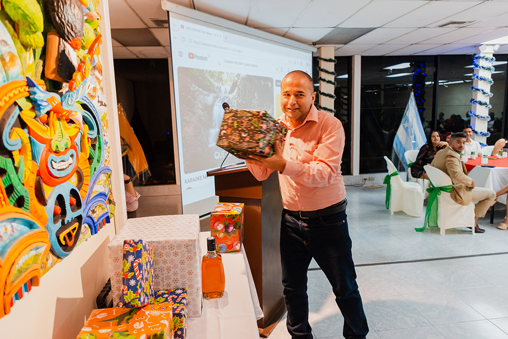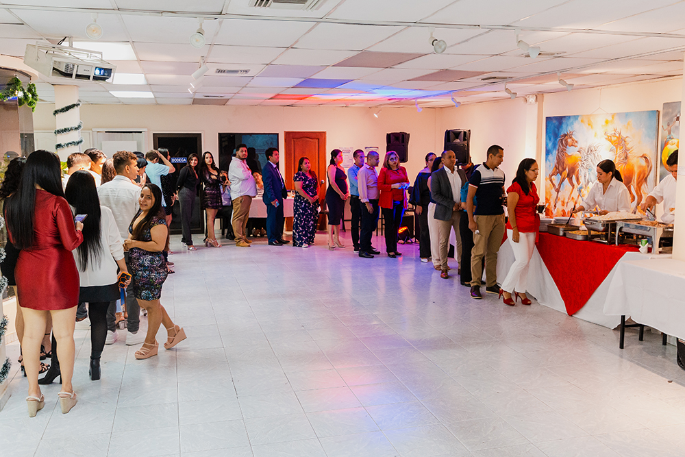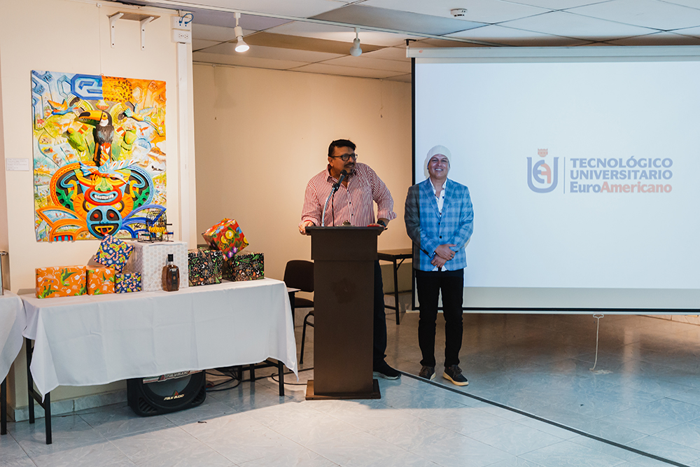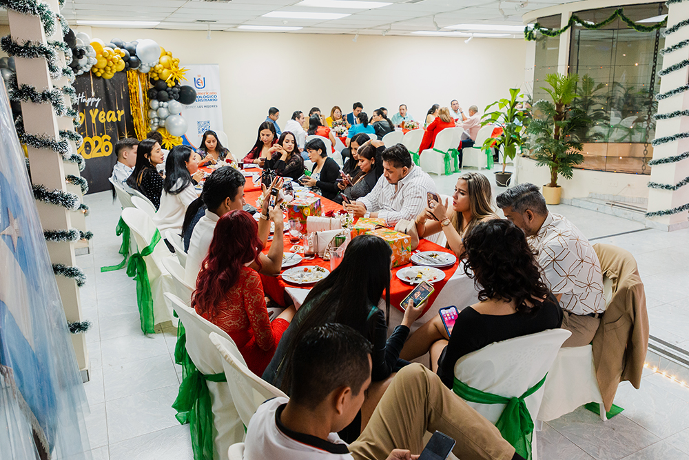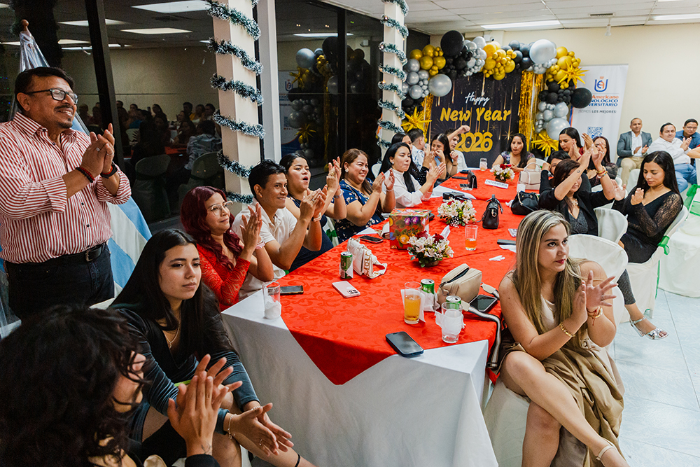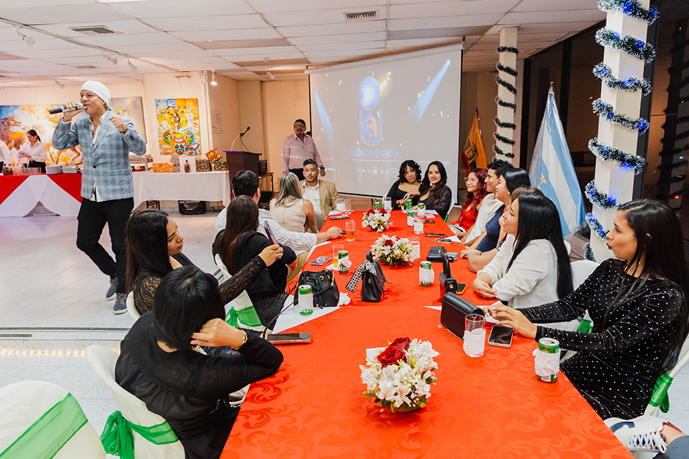 En diciembre de 2025, el Tecnológico Universitario EuroAmericano celebró su tradicional fiesta de fin de año en el auditorio del Edificio 2, un espacio que congregó a docentes de varias carreras y modalidades, directivos y personal administrativo en una jornada marcada por la integración, la alegría y el compañerismo. La ambientación del evento estuvo a cargo del personal de la carrera de Enfermería, quienes, con creatividad y dedicación, transformaron el auditorio en un escenario acogedor y festivo, reflejando el espíritu navideño y el cierre de un año de trabajo conjunto. Durante la velada, los asistentes disfrutaron de presentaciones de baile, premios sorpresa, música en vivo y una exquisita cena, generando un ambiente de celebración y convivencia. Este encuentro no solo permitió compartir momentos de esparcimiento, sino que también fortaleció los lazos institucionales y reafirmó el compromiso del EuroAmericano con el bienestar, la integración y el reconocimiento de su comunidad educativa.