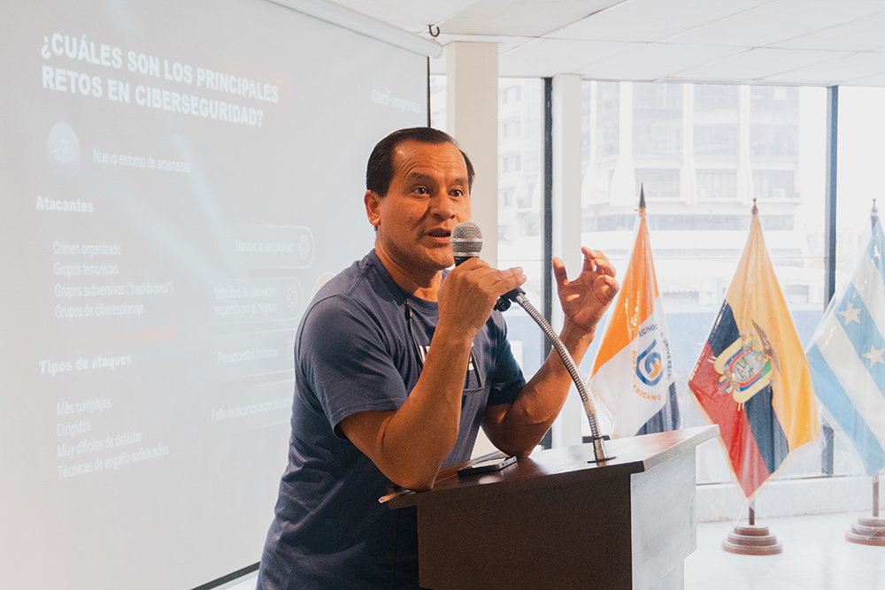 Los estudiantes de Redes y Telecomunicaciones del Instituto Euroamericano culminaron el Curso Técnico en Seguridad Informática en la plataforma Aprende con Claro y, como cierre de su capacitación, participaron en la Charla Magistral de Ciberseguridad, impartida por el Ing. MSc. José Luis Loaiza, CISO de Claro Ecuador.