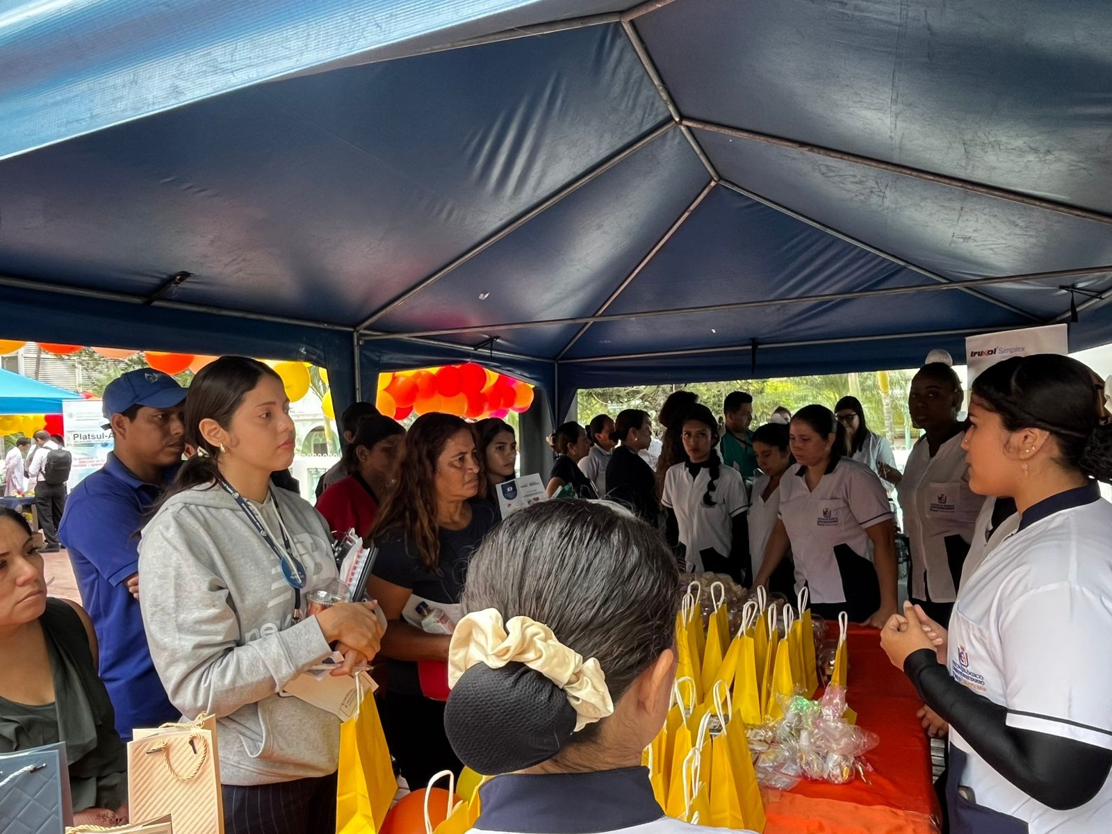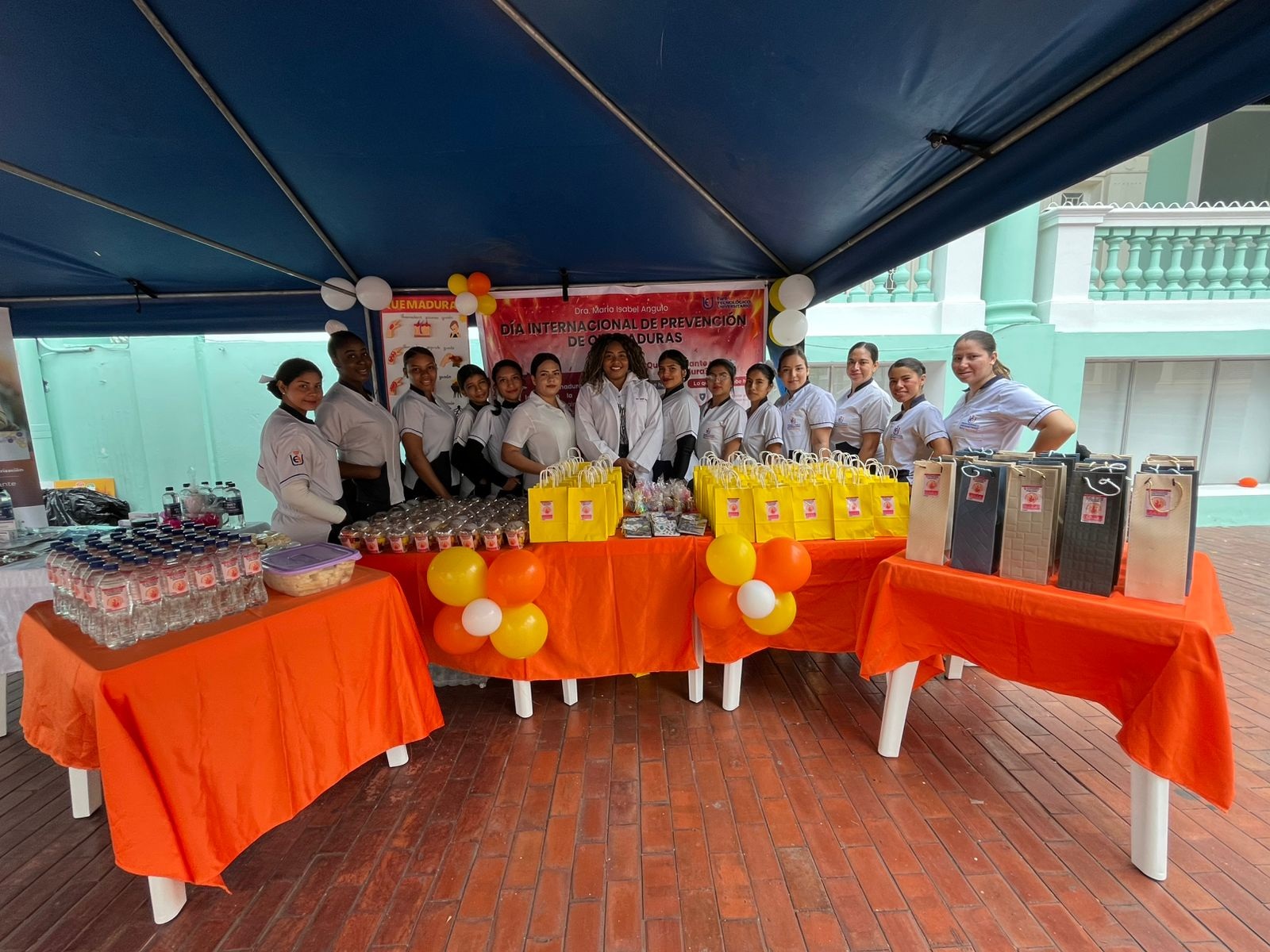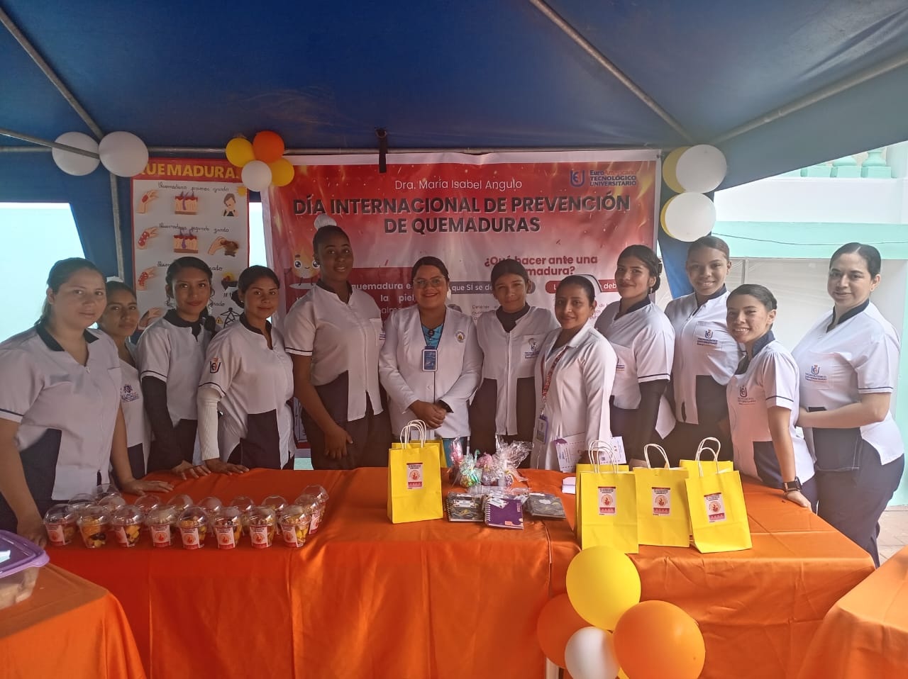 La Dra. María Isabel Angulo, junto a estudiantes del Tecnológico Universitario EuroAmericano, participaron en el Hospital Luis Vernaza en el marco de la conmemoración del Día Internacional de la Prevención contra Incendios.