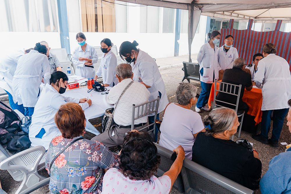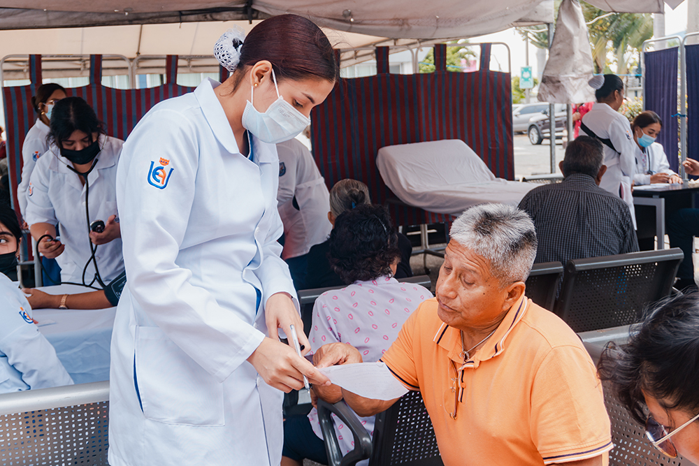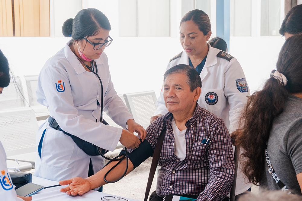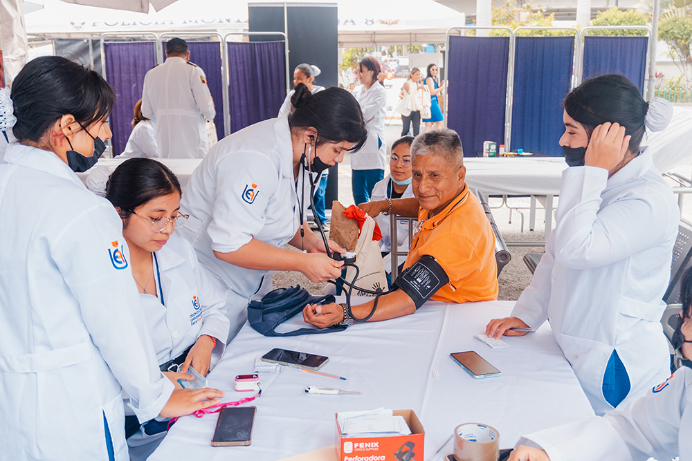 Estudiantes de Primer Semestre de Enfermería participaron en el evento institucional por la conmemoración del Día del Adulto Mayor, organizado por el Hospital de la Policía Nacional. Durante la jornada se realizaron controles de signos vitales, glicemia, presión arterial y temperatura, bajo la coordinación del docente de Enfermería, Lic. Byron Díaz.