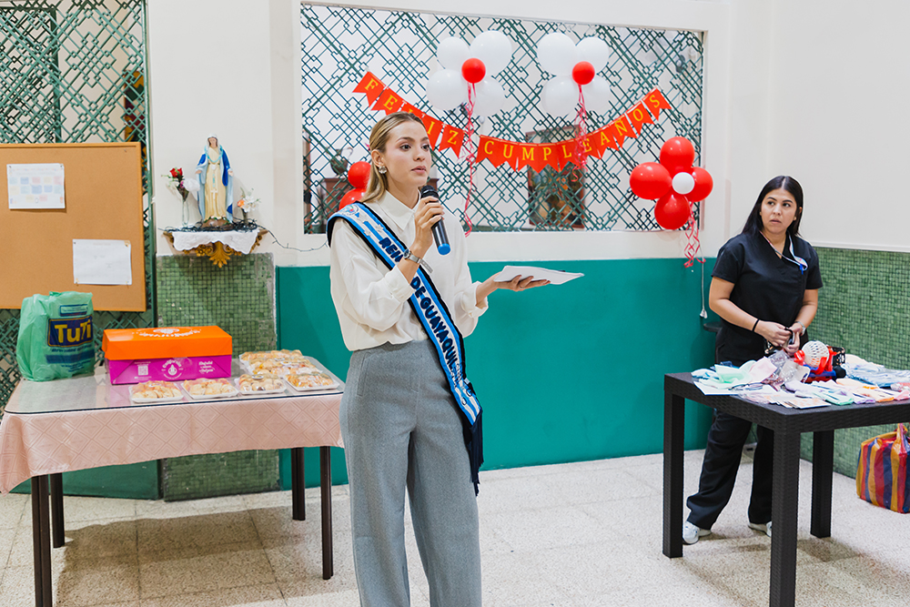 Como parte del Proyecto de Vinculación “Salud en la Comunidad”, se realizó una tarde de recreación en el Asilo Vicente Sotomayor, actividad que contó con la participación de la Srta. Abby Riqueros, Reina de Guayaquil. La jornada estuvo a cargo de la Dra. Jaritza Saltos Farfán, docente responsable de la actividad, y contó con la participación activa de estudiantes de cuarto semestre de la carrera de Enfermería, quienes, mediante dinámicas recreativas y de acompañamiento, contribuyeron a promover el bienestar, la integración y la alegría de los adultos mayores.