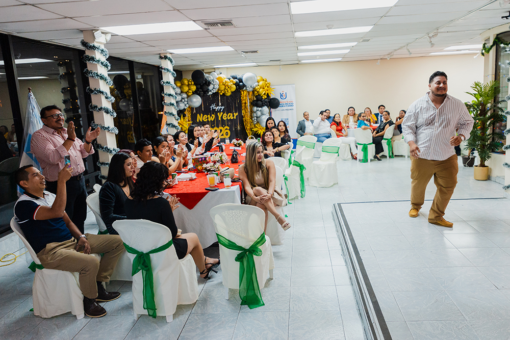 En diciembre de 2025, el Tecnológico Universitario EuroAmericano celebró su tradicional fiesta de fin de año en el auditorio del Edificio 2, un espacio que congregó a docentes de varias carreras y modalidades, directivos y personal administrativo en una jornada marcada por la integración, la alegría y el compañerismo. La ambientación del evento estuvo a cargo del personal de la carrera de Enfermería, quienes, con creatividad y dedicación, transformaron el auditorio en un escenario acogedor y festivo, reflejando el espíritu navideño y el cierre de un año de trabajo conjunto. Durante la velada, los asistentes disfrutaron de presentaciones de baile, premios sorpresa, música en vivo y una exquisita cena, generando un ambiente de celebración y convivencia. Este encuentro no solo permitió compartir momentos de esparcimiento, sino que también fortaleció los lazos institucionales y reafirmó el compromiso del EuroAmericano con el bienestar, la integración y el reconocimiento de su comunidad educativa.